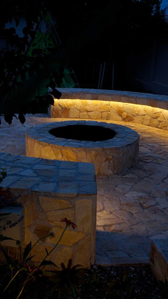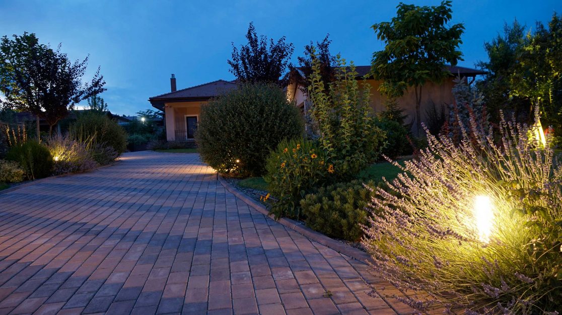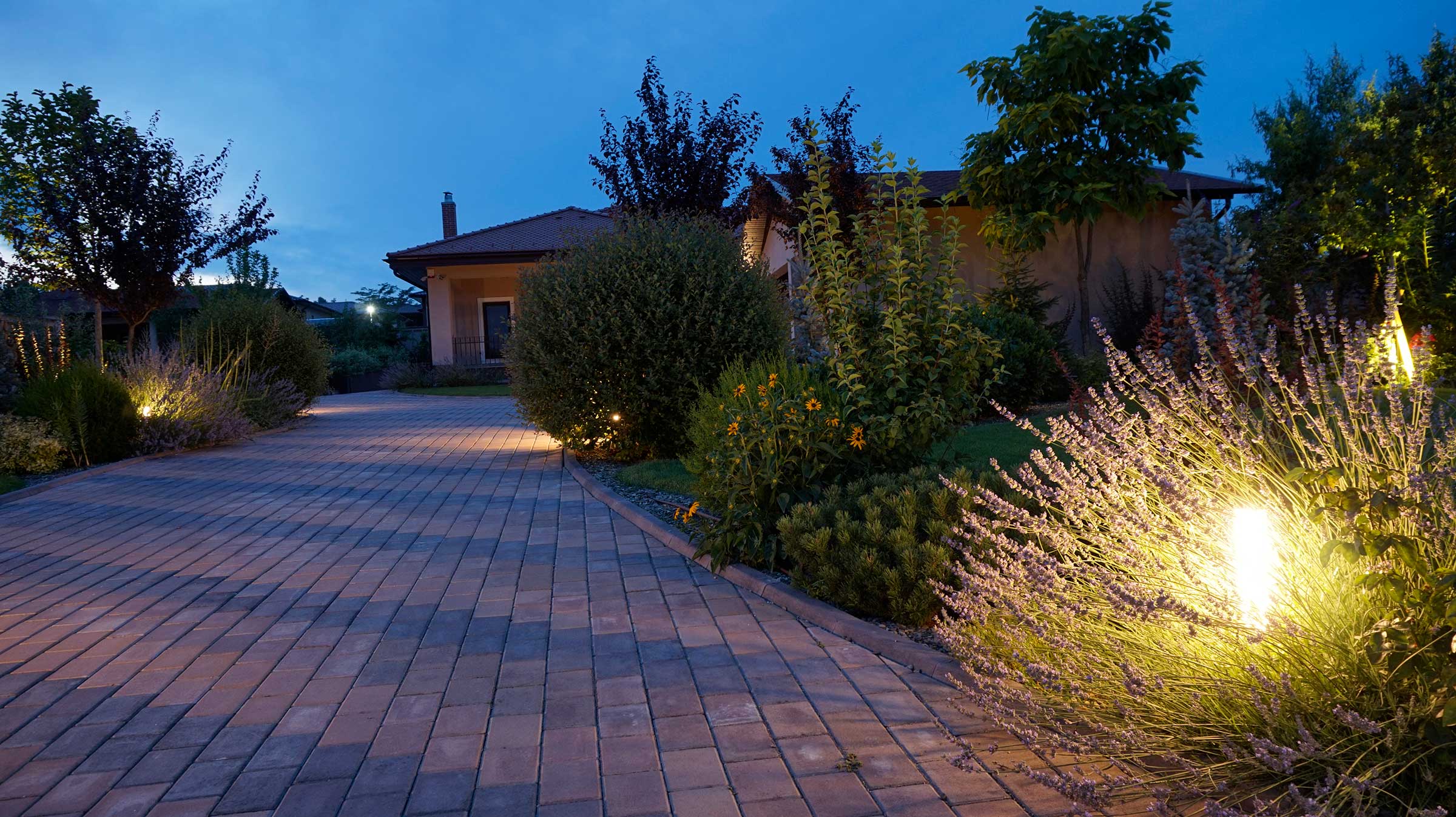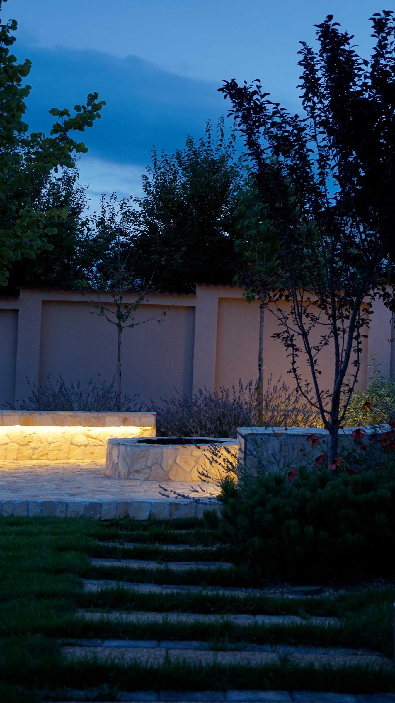 Arborii, arbustii si plantele perene cu scop decorativ au fost atent selectionate impreuna cu intreaga familie pentru a oferi un cadru dinamic pe tot parcursul anului, multa culoare si intimitate gradinii. Amenajarea este insufletita pe timpul noptii de un sistem de iluminat decorativ gandit pentru a evidentia atat vegetatia cat si elementele construite. Peluza a fost realizata prin placarea cu rulouri de gazon si se va mentine verde de la an la an cu ajutorul sistemului de irigare prin aspersiune.